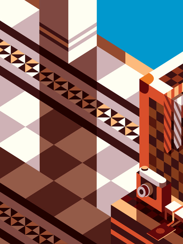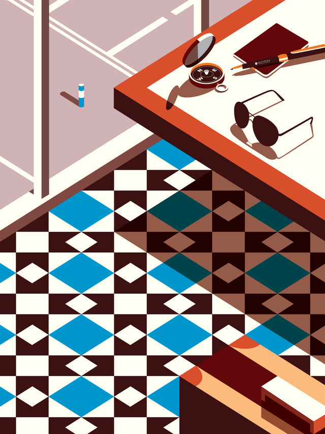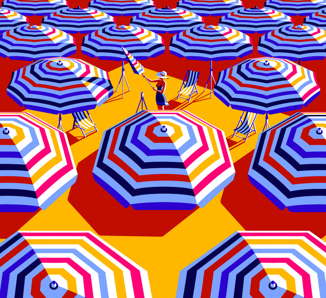 The idea in most of my pattern-based work is to use figurative elements to interfere with the repetition. Whether using a figure as the hero of the composition or as a little touch, there is always a story to my patterns – a hidden narrative that guides the viewer and helps them decode the image and its meaning. Keeping a level of visual surprise and dizziness is what makes it fun and like any other illustration work, it is about composition, scale and harmony. For that reason, I tend to limit my palette even more in pattern-based illustration.
