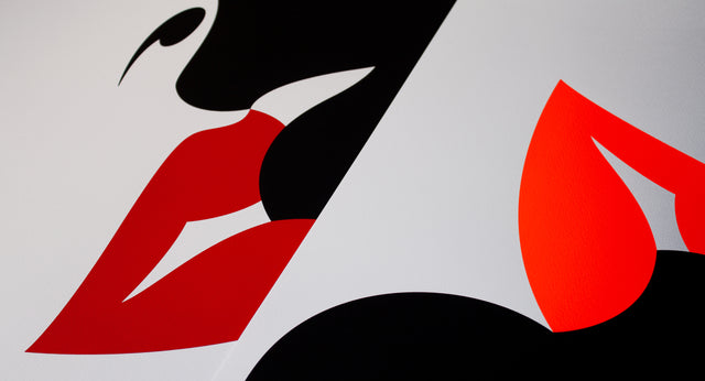 I wanted to draw the essence of a kiss, with as little lines and colours as possible. The final piece plays heavily with the negative space as forms are revealed in its counterform.