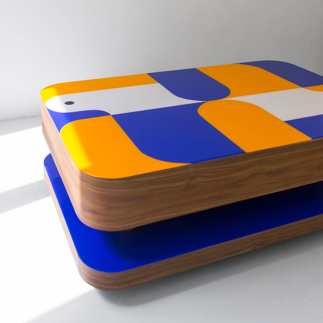 Starting with the iconic shape of the coffee table previously designed by Alice, Malika proposed a duo of interlocking Toucan birds that would live within the bounds of the table itself, thus turning it into a symbolic nest.