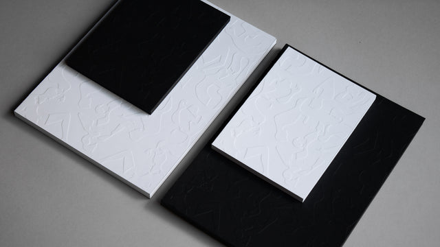 Over the course of six months, we developed a fully embossed stationary set that could be made using a single metal plate for both a small notebook and a larger sketchbook.